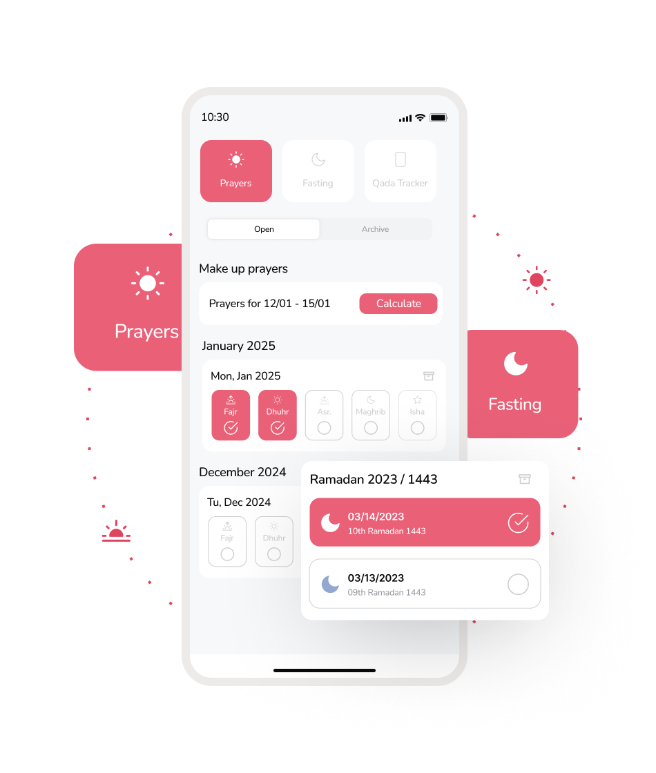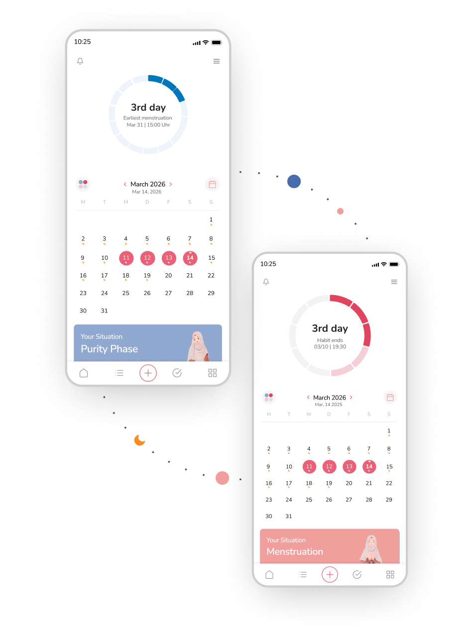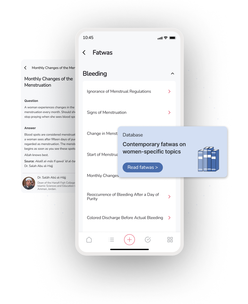 Waliya helps you track your menstruation, purity phases, and postpartum bleeding, calculate and organize missed prayers and fasts, access fatwas and articles, and find the Qibla.