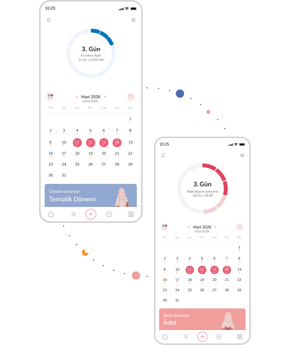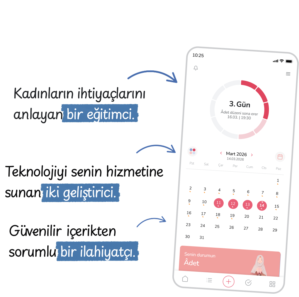Waliya ile âdet, temizlik ve lohusalık dönemlerini takip edebilir, kaza namaz ve oruçlarını hesaplayabilir, fetvalara ve makalelere ulaşabilir, kıble yönünü bulabilirsin.